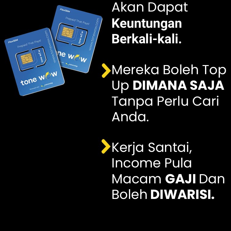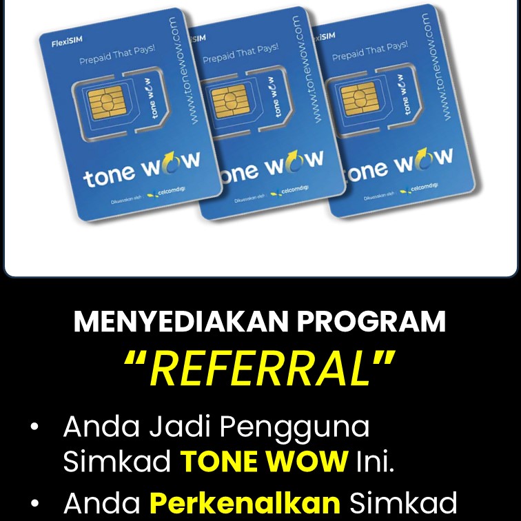 Laman Web www.ToneWowCelcomDigi.com ini bukanlah laman web rasmi syarikat. Ini adalah laman web reseller yang sah di bawah kumpulan yang menggunakan sistem 100% ONLINE, untuk memudahkan ahlinya mengembangkan rangkaian mereka. Jika anda ada sebarang pertanyaan, sila hubungi penaja anda.